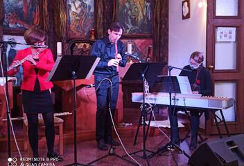 Následovala Zima od Hermana Beeftinka – skladba pro příčnou flétnu a klavír, dále zazněla od G. Ph. Telemanna Triová sonáta c moll a od R. Valentina Triová sonáta F dur. Následovala báseň Uzdravení děvčátka ze sbírky Ježíškova košilka, kterou přednesla opět paní Irena Pulicarová.
