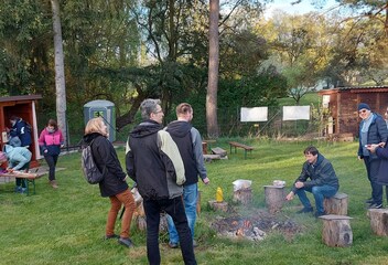V chladném počasí jsme se ohřáli u ohně a opékali si buřty. Zúčastnili se i františkán br. Marek z Lochotína se skupinou dětí z náboženství a jejich vedoucími.